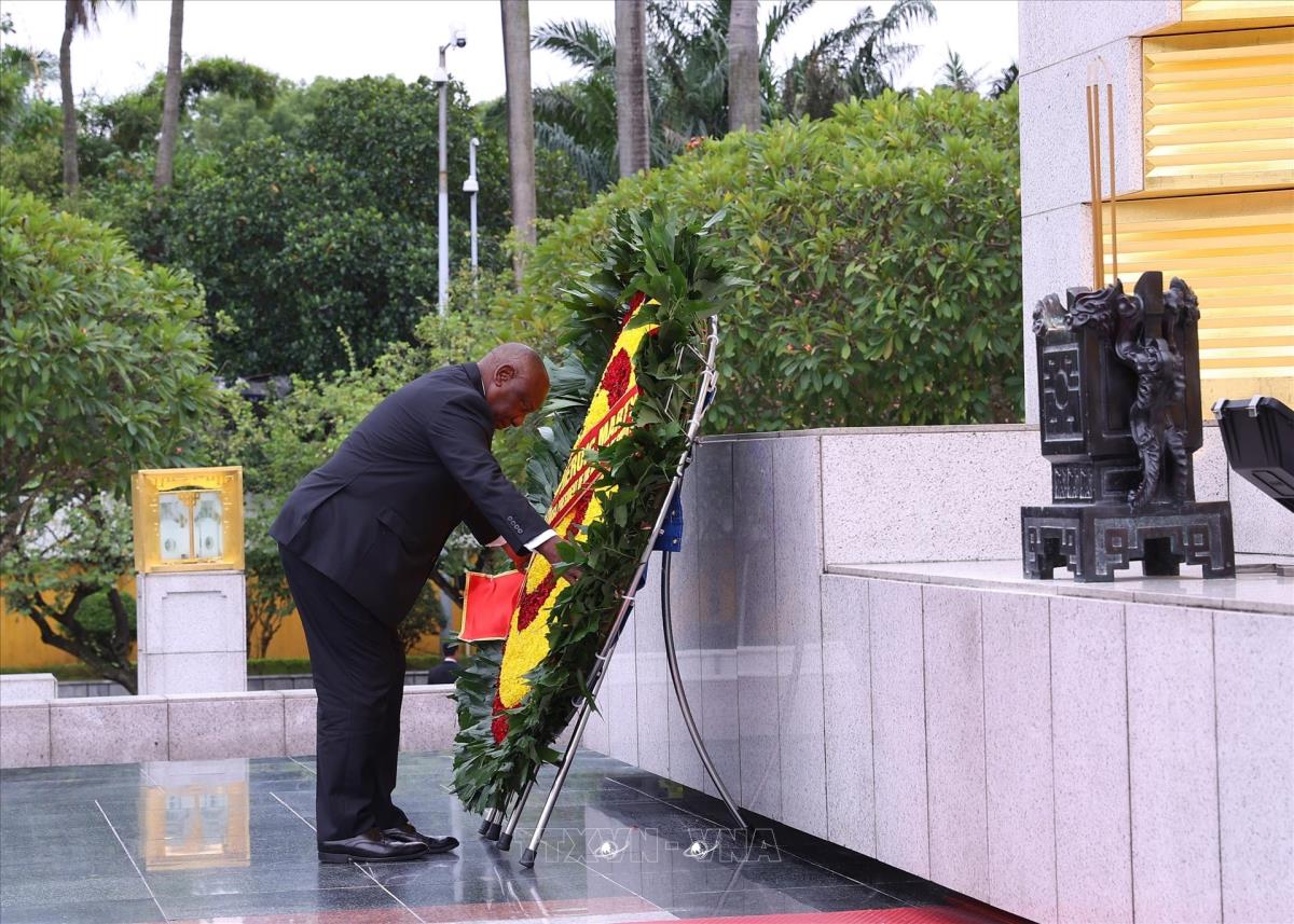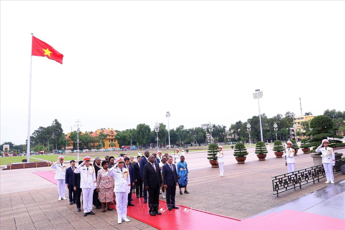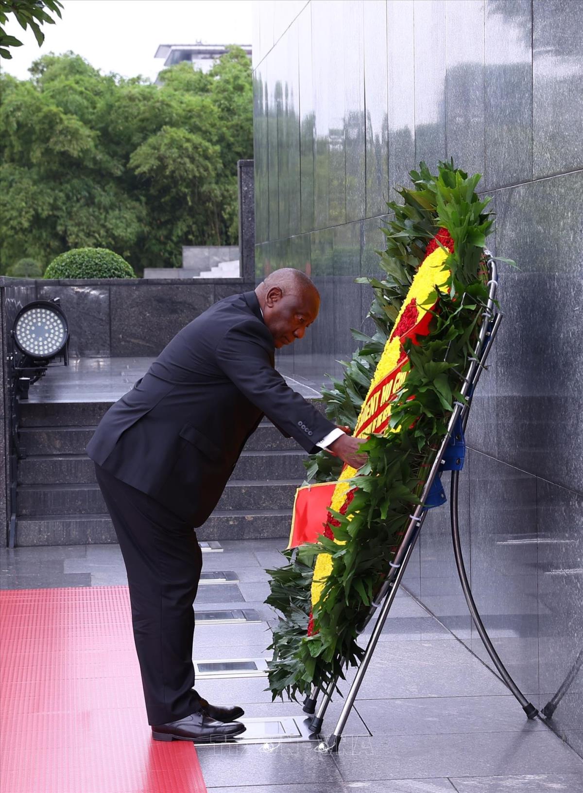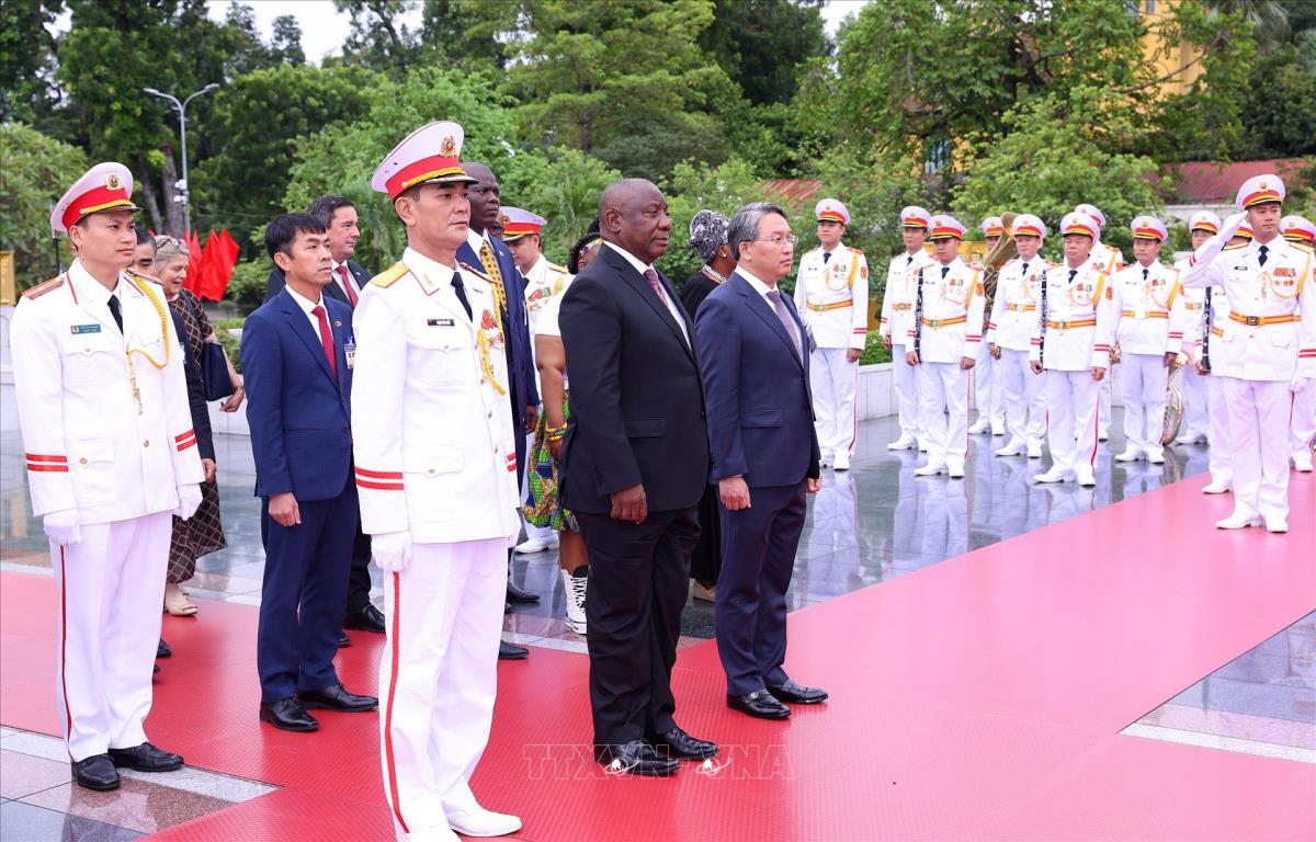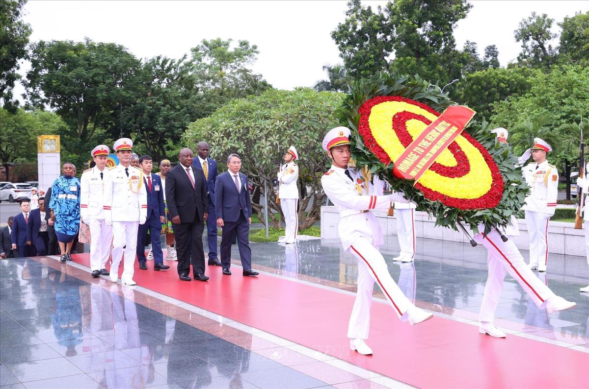 Hà Nội (TTXVN 23/10/2025) Trong chương trình thăm cấp Nhà nước đến Việt Nam, chiều 23/10/2025, Tổng thống nước Cộng hòa Nam Phi Matamela Cyril Ramaphosa đến đặt vòng hoa, vào Lăng viếng Chủ tịch Hồ Chí Minh và dâng hương, tưởng niệm các Anh hùng liệt sĩ tại Đài Tưởng niệm các Anh hùng liệt sĩ trên đường Bắc Sơn, Hà Nội.