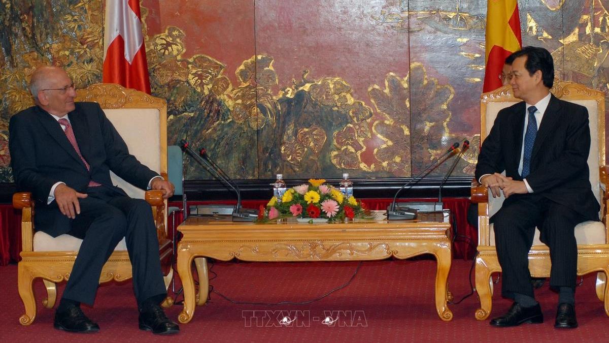 Tổng thống Pascal Couchepin đánh giá cao quan hệ hữu nghị, hợp tác tốt đẹp giữa hai nước trong nhiều lĩnh vực; khẳng định Thụy Sĩ tiếp tục dành cho Việt Nam sự ủng hộ, giúp đỡ và hợp tác trong những lĩnh vực Thụy Sĩ có thế mạnh, trong đó có giáo dục và đào tạo nguồn nhân lực. Nhân chuyến thăm này, hai nước Việt Nam và Thụy Sĩ đã ra Thông cáo chung./.