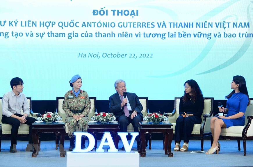 Chiều 22/10/2022, Tổng Thư ký Liên hợp quốc António Guterres dự cuộc gặp và nói chuyện với đại diện thanh niên, sinh viên Việt Nam do Bộ trưởng Bộ Ngoại giao Bùi Thanh Sơn chủ trì.