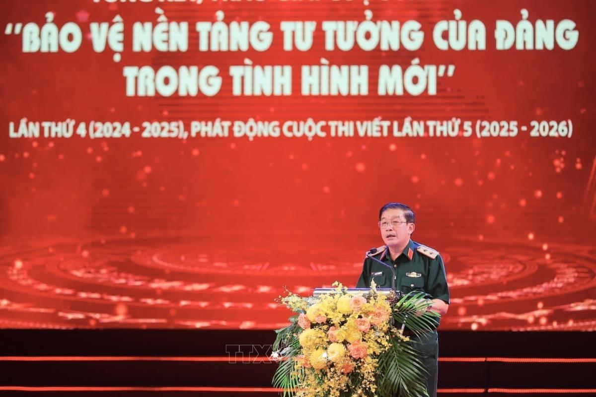Hà Nội (TTXVN 15/5/2025) Tối 15/5, tại Hà Nội, dưới sự chỉ đạo của Tổng cục Chính trị Quân đội nhân dân Việt Nam, Báo Quân đội nhân dân phối hợp với Hội Nhà báo Việt Nam, Nhà xuất bản Quân đội và Ngân hàng Thương mại Cổ phần Quân đội tổ chức tổng kết, trao giải Cuộc thi viết “Bảo vệ nền tảng tư tưởng của Đảng trong tình hình mới” lần thứ 4 (2024 - 2025) và phát động cuộc thi viết lần thứ 5 (2025 - 2026).