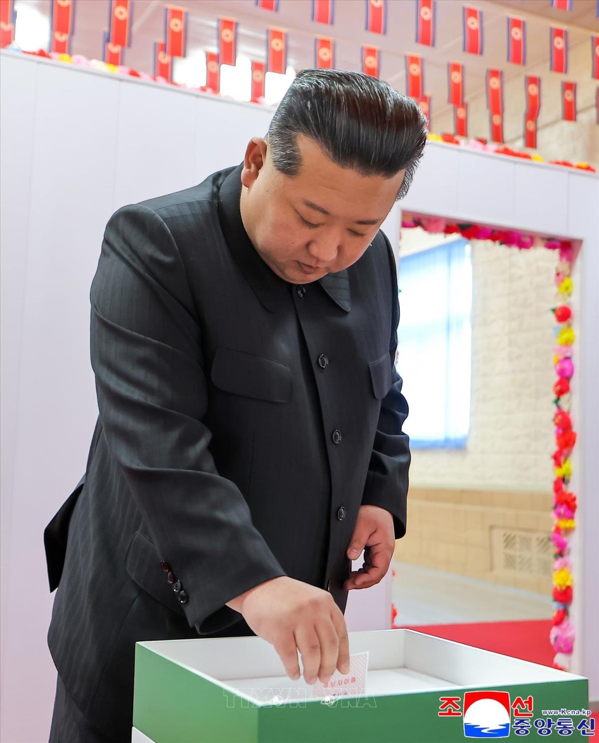 Nhà lãnh đạo Triều Tiên Kim Jong-un bỏ phiếu tại một điểm bầu cử ở Sunchon, Triều Tiên, ngày 15/3/2026. Ảnh: Yonhap/TTXVN
