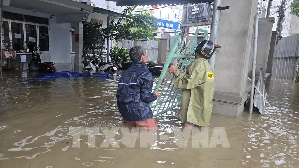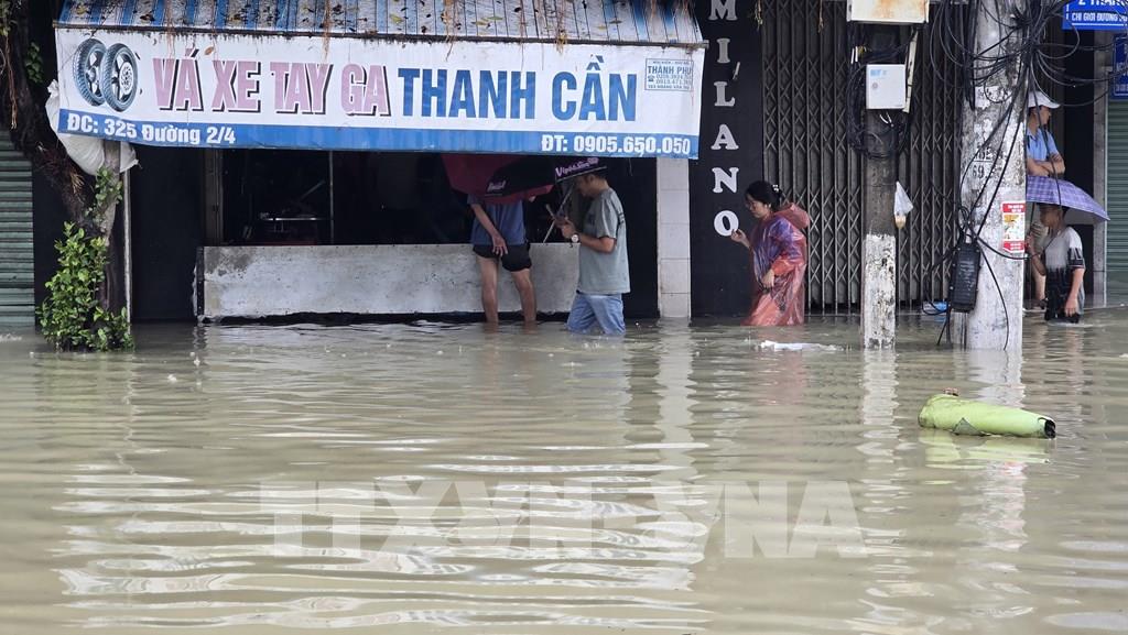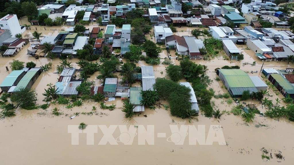 Mưa lũ gây ngập lụt sâu trên diện rộng ở Khánh Hòa. Ảnh: Nguyễn Thành - TTXVN