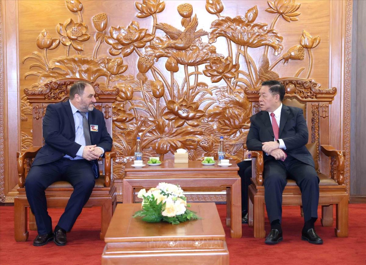 [Photo] Trưởng Ban Tuyên giáo và Dân vận Trung ương tiếp Đoàn Đảng Cộng sản Uruguay