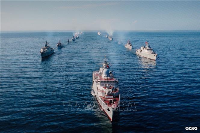 Tại Căn cứ quân sự Cam Ranh, tỉnh Khánh Hòa, phần diễu binh trên biển của các lực lượng vũ trang được truyền hình ảnh về Quảng trường Ba Đình lịch sử. Đội hình các lực lượng tham gia diễu binh trên biển gồm: Tàu chỉ huy; máy bay tuần thám biển, trực thăng săn ngầm; các biên đội tàu ngầm, tàu hộ vệ tên lửa, tàu hộ vệ chống ngầm, tàu tên lửa tấn công nhanh, tàu pháo của Hải quân nhân dân Việt Nam; các biên đội tàu của Cảnh sát biển Việt Nam; Bộ đội biên phòng và Hải đội dân quân thường trực, cùng nhiều phương tiện, khí tài hiện đại khác. Đây là lực lượng nòng cốt trong quản lý, bảo vệ vững chắc chủ quyền biển, đảo thiêng liêng của Tổ quốc.