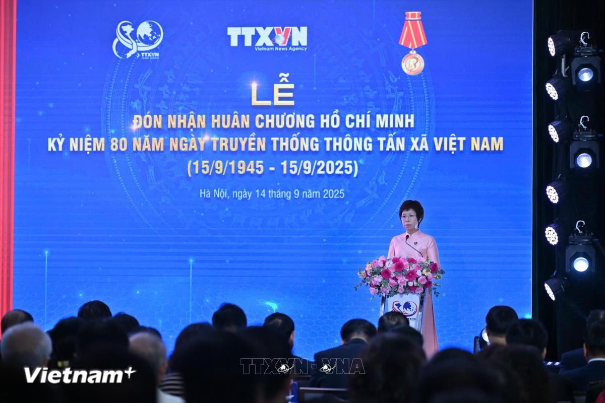 Sáng 14/9, tại Trung tâm Thông tấn quốc gia, số 5 Lý Thường Kiệt, Hà Nội, Thông tấn xã Việt Nam long trọng tổ chức Lễ đón nhận Huân chương Hồ Chí Minh và Kỷ niệm 80 năm Ngày truyền thống Thông tấn xã Việt Nam (15/9/1945-15/9/2025).