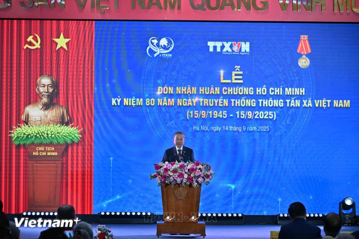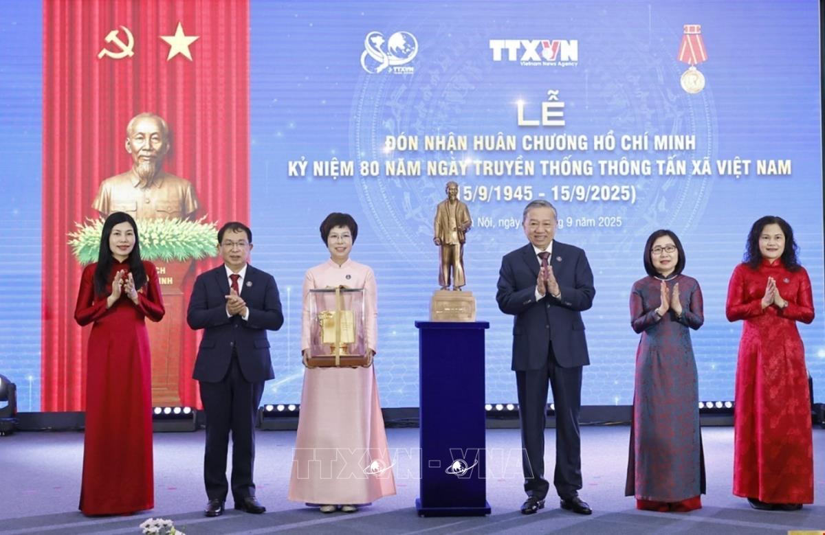 Hà Nội (TTXVN 14/9/2025) Với bề dày truyền thống, có công lao to lớn, đặc biệt xuất sắc trong sự nghiệp cách mạng của Đảng và dân tộc, Thông tấn xã Việt Nam vinh dự được Tổng Bí thư Tô Lâm trao Huân chương Hồ Chí Minh.