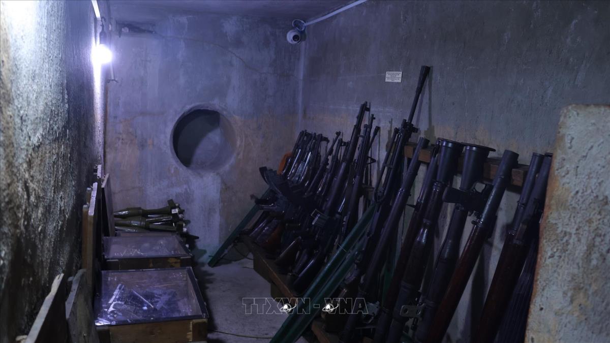 Căn hầm từng chứa hơn 2 tấn vũ khí các loại, bao gồm: lựu đạn, thuốc nổ, súng AK, súng B40... Ảnh: Hữu Duyên - TTXVN