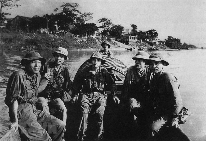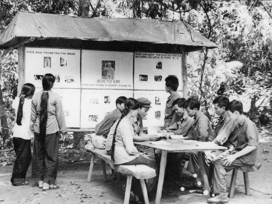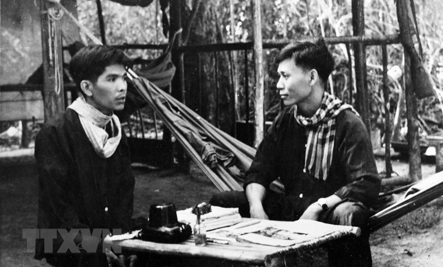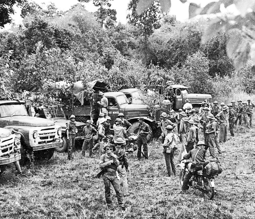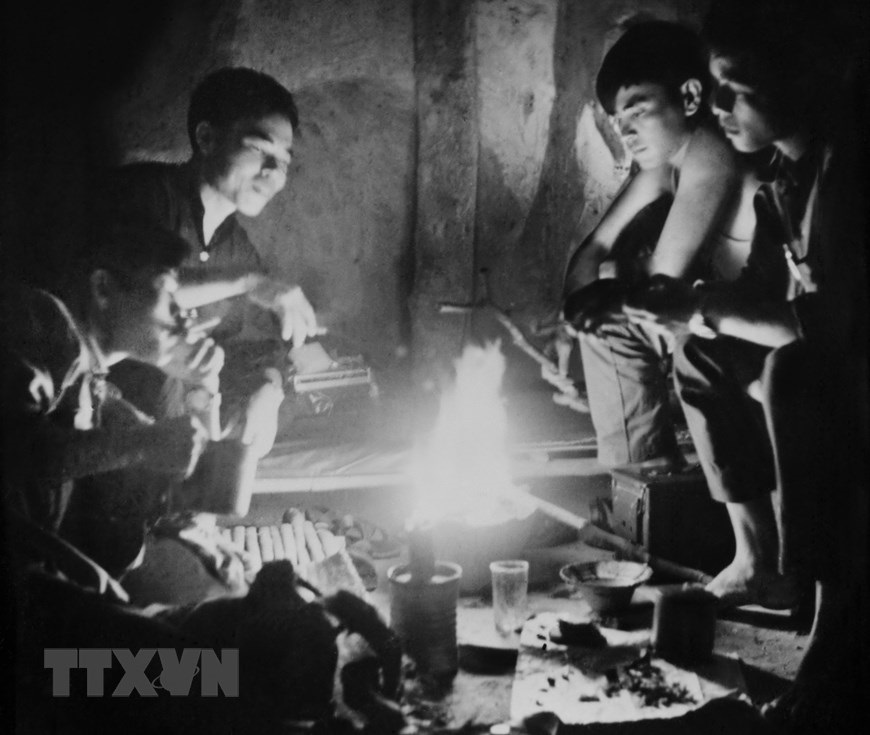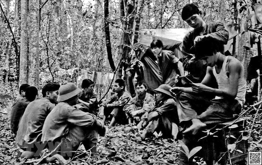 Chặng dừng chân của đoàn phóng viên GP 10 của Việt Nam Thông tấn xã trên đường vào Chiến dịch Hồ Chí Minh để chi viện cho Thông tấn xã Giải phóng. (Ảnh: Việt Nam thông tấn xã)