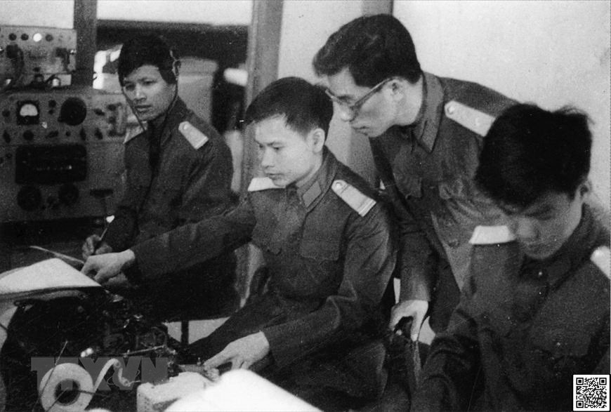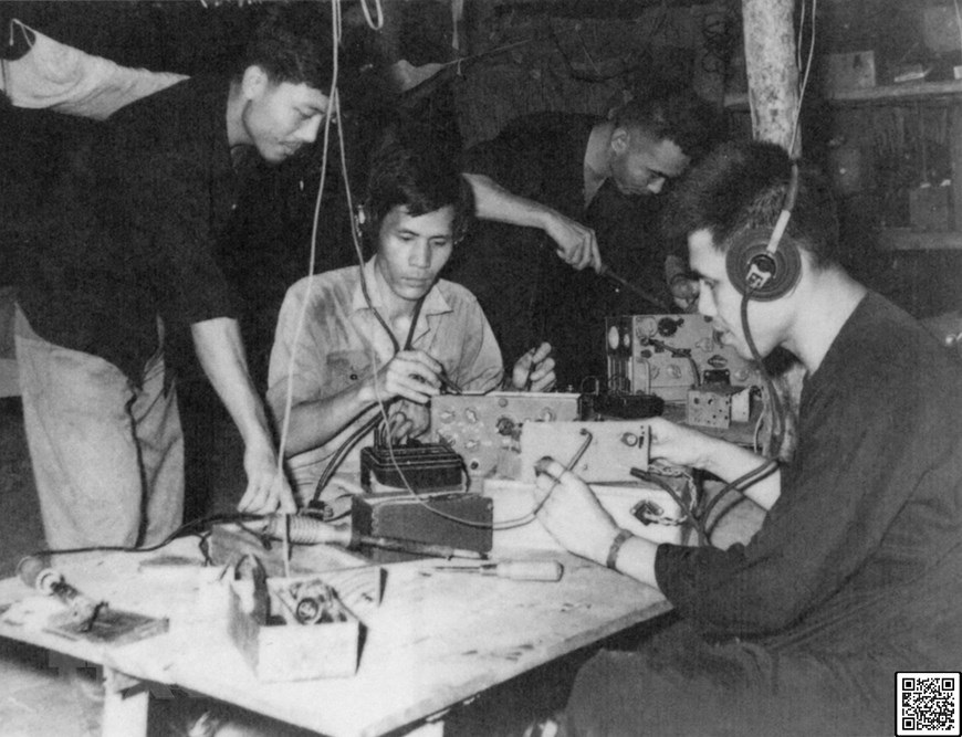 Bộ phận kỹ thuật của Thông tấn xã Giải phóng lắp ráp thiết bị thu phát tin, ảnh. (Ảnh: Thông tấn xã Giải phóng)