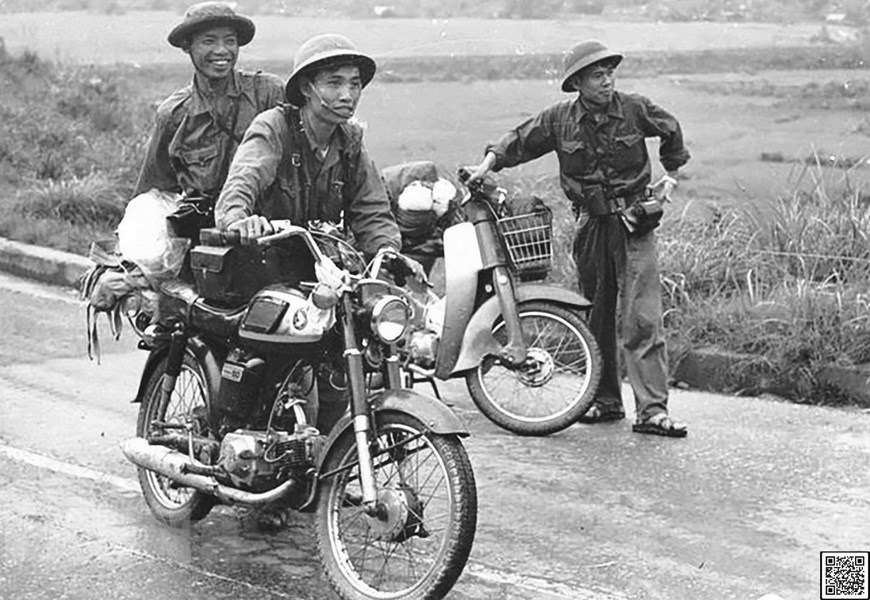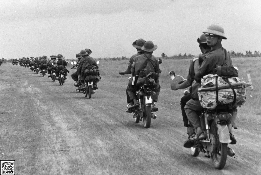 Đoàn phóng viên Thông tấn xã Giải phóng đi chiến dịch Hồ Chí Minh trên đường tiến về Sài Gòn (4/1975). (Ảnh: Thông tấn xã Giải phóng)
