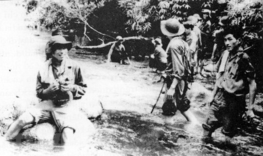 Phóng viên Thông tấn xã Giải phóng tham gia chống càn Junction City của Mỹ (năm 1967). (Ảnh: Thông tấn xã Giải phóng)