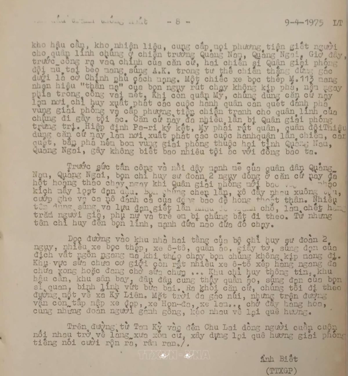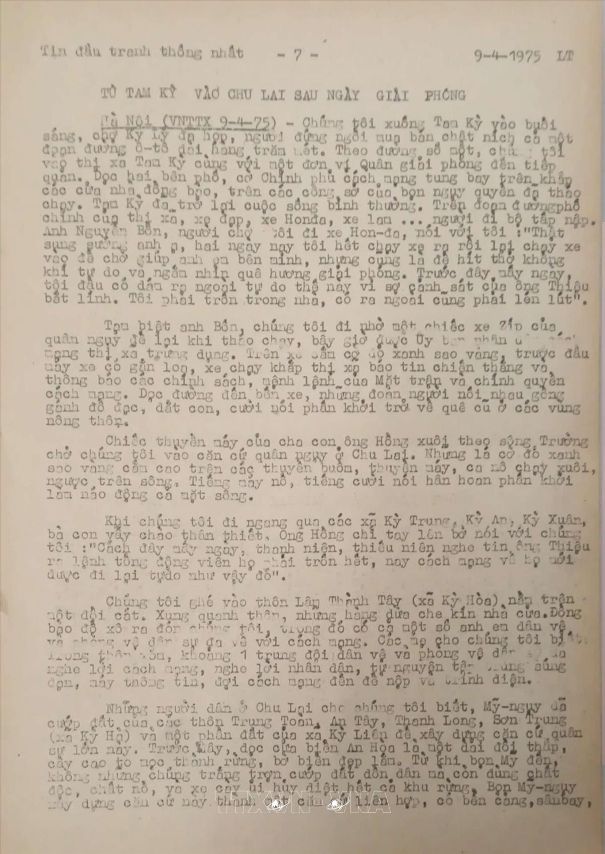Từ Tam Kỳ vào Chu Lai sau ngày giải phóng Tin đấu tranh thống nhất của Việt Nam Thông tấn xã, ngày 9/4/1975 Từ khóa:Giải phóng miền Namthống nhất đất nướcThông tấn xã Giải phóngTam KỳChu LaiQuảng NamQuảng Ngãi