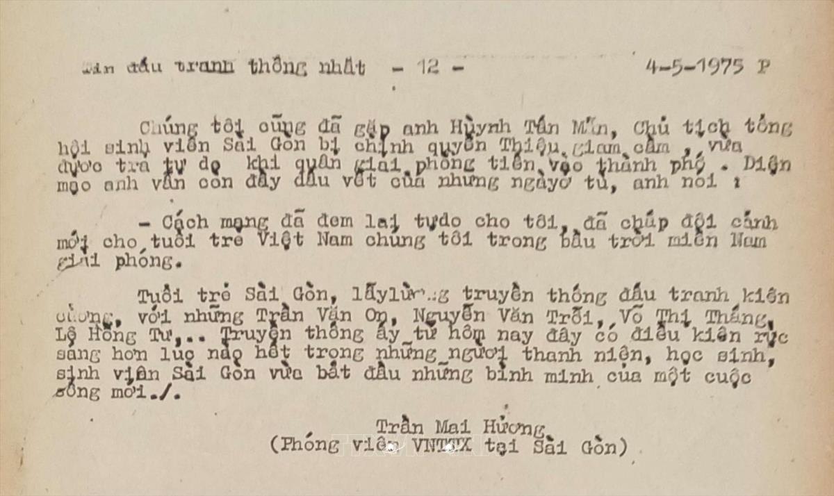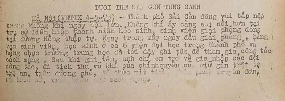 Từ khóa:Giải phóng miền Namthống nhất đất nướcThông tấn xã Giải phóngSài Gòntuổi trẻ Thành phố Hồ Chí Minh