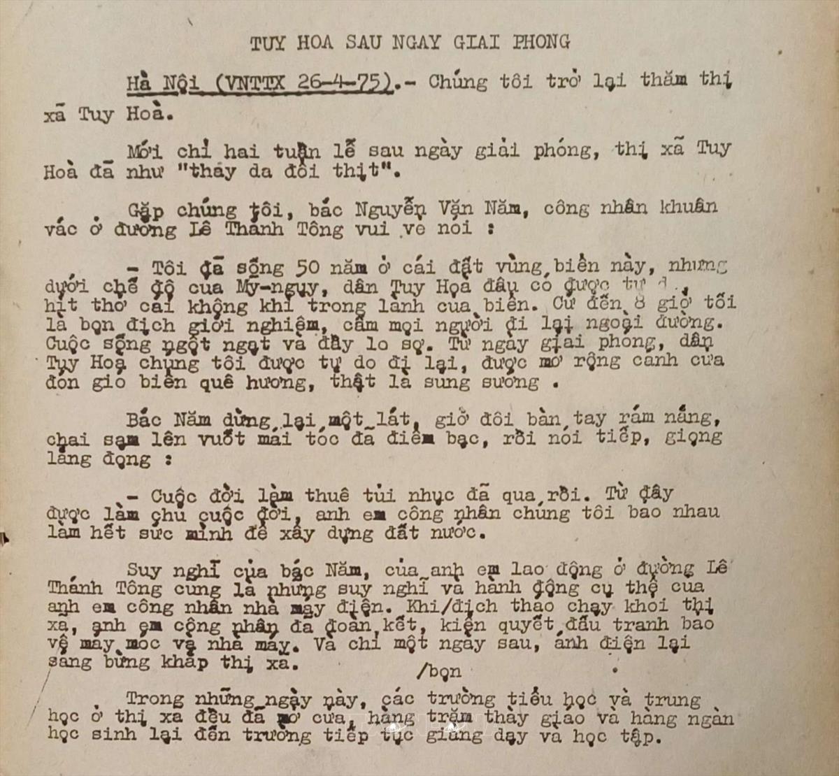 Tuy Hòa sau ngày giải phóng Tin đấu tranh thống nhất của Việt Nam Thông tấn xã, ngày 26/4/1975 Từ khóa:Giải phóng miền Namthống nhất đất nướcThông tấn xã Giải phóngTuy HòaPhú Yên