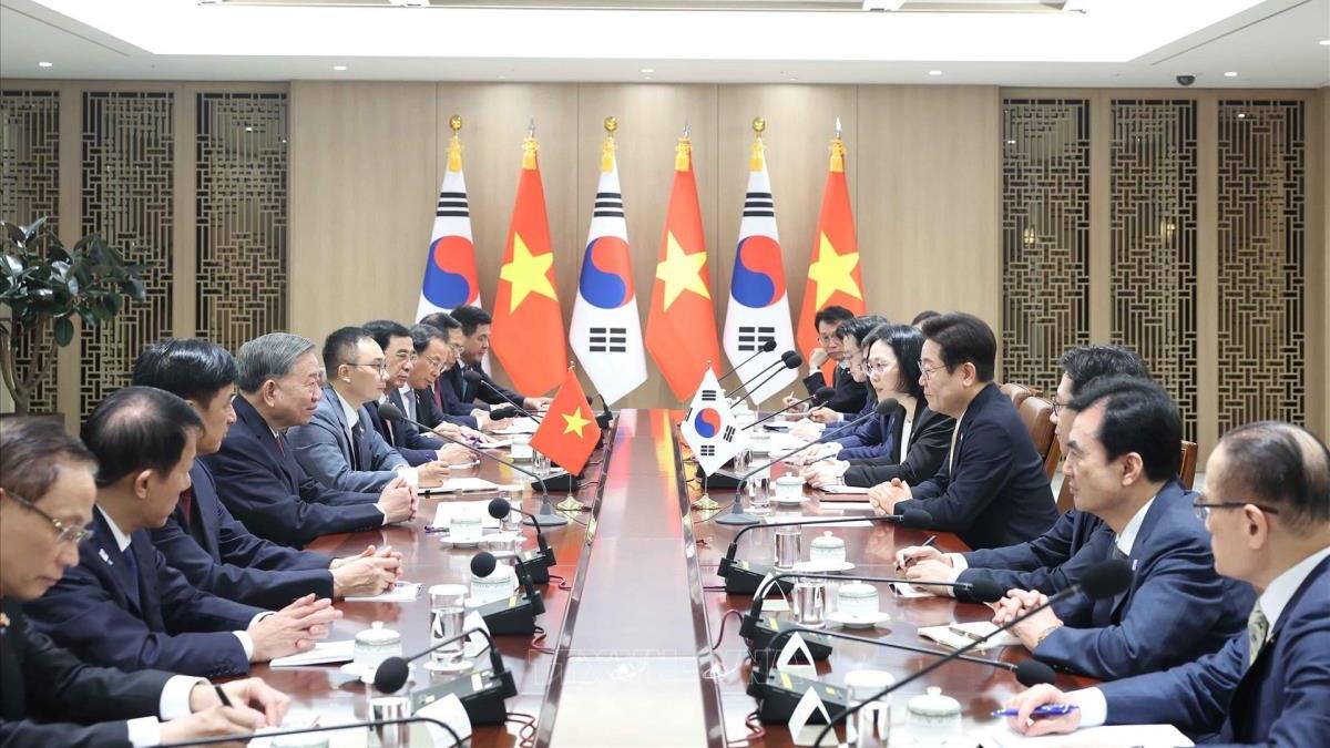 Tổng Bí thư Tô Lâm và Tổng thống Lee Jae Myung đánh giá cao sự phát triển vượt bậc của quan hệ song phương kể từ khi hai nước thiết lập quan hệ ngoại giao vào năm 1992 và nhất là sau khi nâng cấp quan hệ lên Đối tác Chiến lược toàn diện vào năm 2022; khẳng định hai nước là đối tác quan trọng hàng đầu của nhau trên tất cả các lĩnh vực. Tổng Bí thư Tô Lâm và Tổng thống Lee Jae Myung nhất trí cho rằng những thành tựu đã đạt được trong hơn ba mươi năm qua là nền tảng vững chắc và là động lực lâu dài để hai bên củng cố và đưa quan hệ Đối tác Chiến lược toàn diện đi vào chiều sâu, thực chất, hiệu quả, và chuyển sang giai đoạn mới.