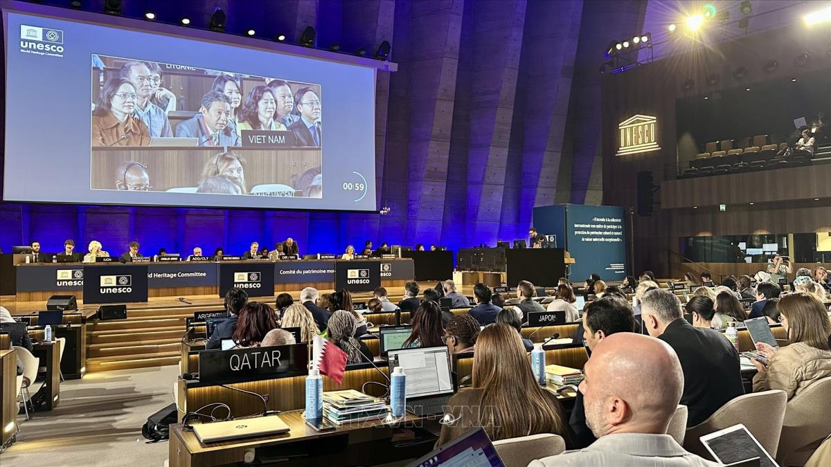 Tại phiên họp ngày 13/7, Ủy ban di sản thế giới xem xét hồ sơ điều chỉnh ranh giới của Di sản Thiên nhiên Thế giới Vườn quốc gia Phong Nha - Kẻ Bàng (tỉnh Quảng Trị, Việt Nam) bao gồm cả Vườn quốc gia Hin Nam Nô (tỉnh Khammuane, Lào) (13/7/2025). Ảnh: Thu Hà - PV TTXVN tại Pháp