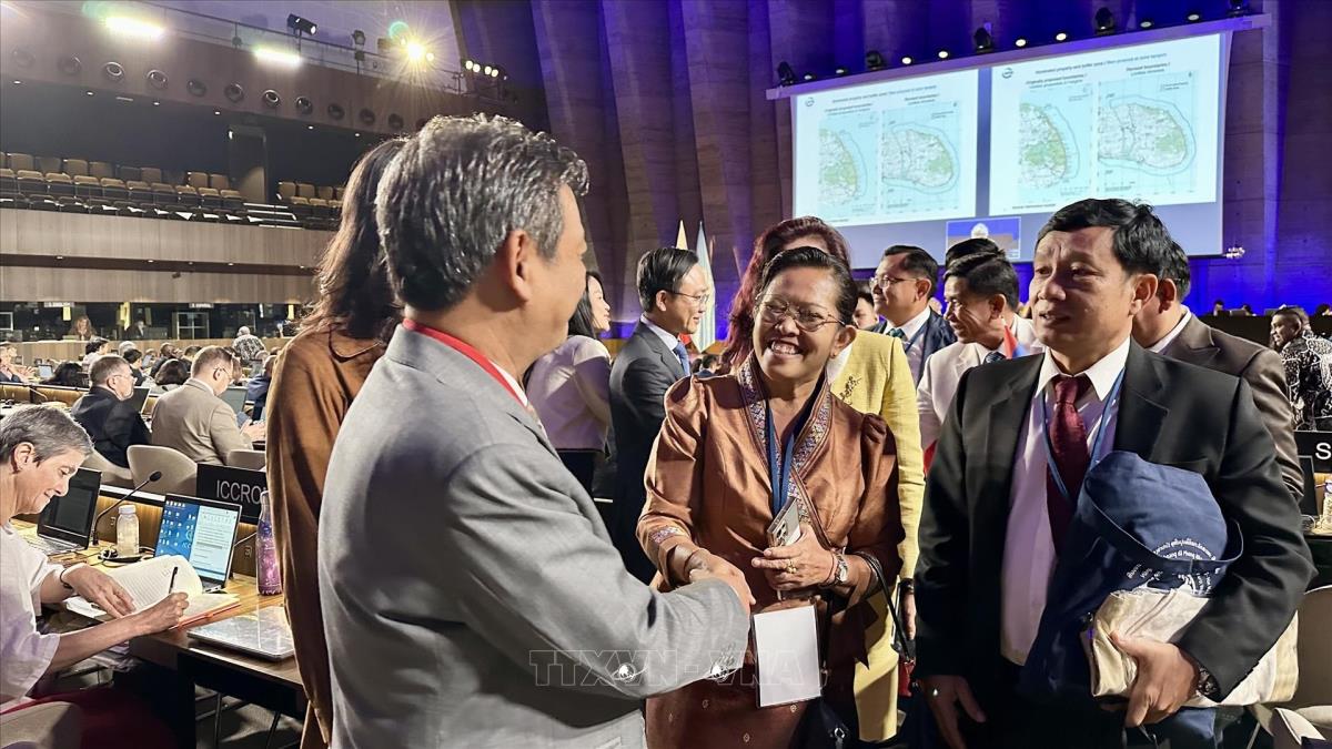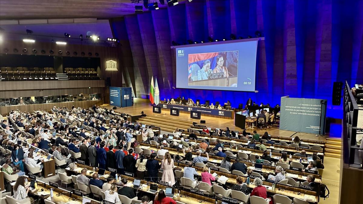 Phiên họp ngày 13/7 của Ủy ban di sản thế giới, xem xét hồ sơ điều chỉnh ranh giới của Di sản Thiên nhiên Thế giới Vườn quốc gia Phong Nha - Kẻ Bàng bao gồm Vườn quốc gia Hin Nam Nô (tỉnh Khammuane, Lào) (13/7/2025). Ảnh: Thu Hà - PV TTXVN tại Pháp