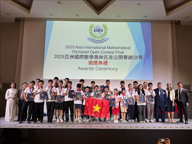 Hà Nội (TTXVN 5/8/2025) Theo phóng viên TTXVN tại Tokyo, ngày 5/8, Ủy ban Olympic Toán học châu Á đã công bố kết quả Vòng Chung kết quốc tế cuộc thi Đấu trường Toán học châu Á - Asia International Mathematical Olympiad (AIMO) 2025 tại Đại học Ngoại ngữ Tokyo (Nhật Bản). Đoàn Việt Nam đã gặt hái được thành công lớn với toàn bộ 22 thành viên đều đạt giải, trong đó có 1 giải Champion, điểm cao nhất trong khối thi Trung học phổ thông.