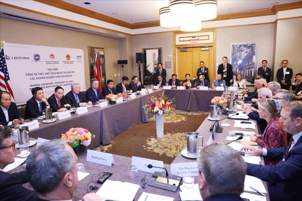 Tổng Bí thư, Chủ tịch nước Tô Lâm dự toạ đàm doanh nghiệp do Hội đồng Doanh nghiệp Hoa Kỳ - ASEAN (USABC), Phòng Thương mại Hoa Kỳ (USCC) và Hội đồng Doanh nghiệp vì vì sự hiểu biết quốc tế (BCIU) đồng tổ chức (Hoa Kỳ 23/9/2024). Ảnh: Lâm Khánh - TTXVN