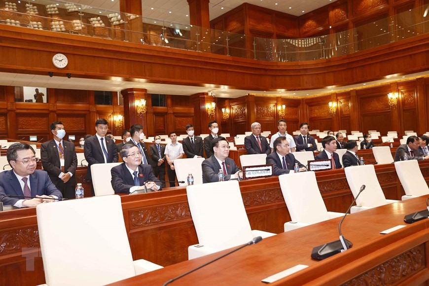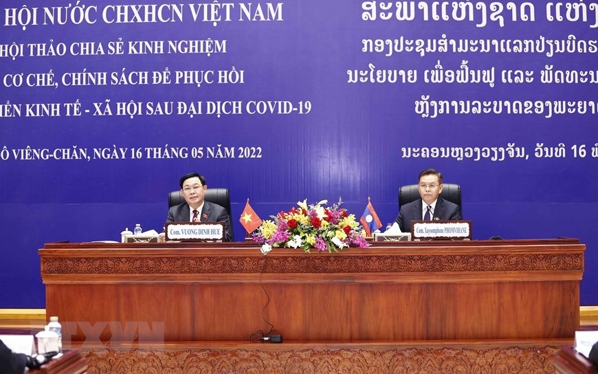 Chủ tịch Quốc hội Vương Đình Huệ đến thăm Nhà Quốc hội Lào, cùng Chủ tịch Quốc hội Lào đồng chủ trì Hội thảo chia sẻ kinh nghiệm về cơ chế, chính sách để phục hồi và phát triển kinh tế-xã hội.