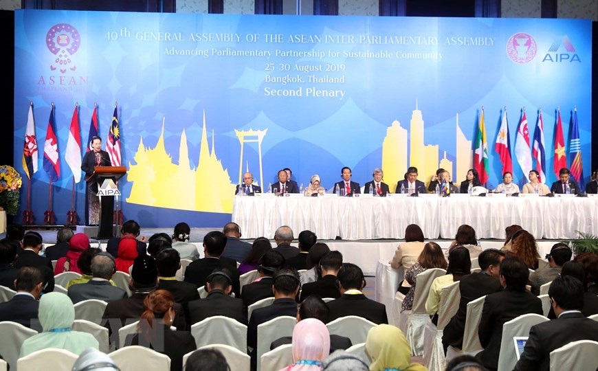 Sáng 29/8/2019, tại Bangkok (Thái Lan), Chủ tịch Quốc hội Nguyễn Thị Kim Ngân dự Phiên bế mạc Đại hội đồng AIPA 40 và tiếp nhận chức Chủ tịch Đại hội đồng Liên nghị viện ASEAN (AIPA 41). (Ảnh: Trọng Đức/TTXVN)