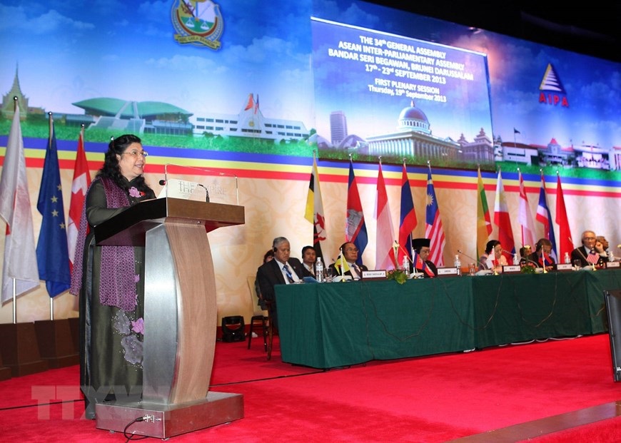 Phó Chủ tịch Quốc hội Tòng Thị Phóng phát biểu tại Phiên họp toàn thể thứ nhất của Đại hội đồng AIPA 34, ngày 19/9/2013, ở Brunei. (Ảnh: Trọng Đức/TTXVN)