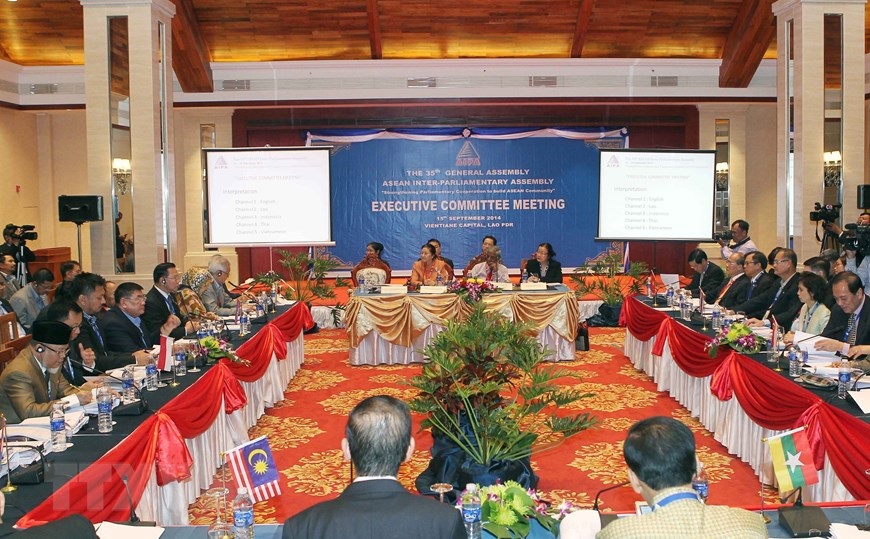 Chủ tịch Quốc hội Nguyễn Sinh Hùng dự phiên họp Ban Chấp hành AIPA-35, tối 15/9/2014, tại Vientiane (Lào). (Ảnh: Nhan Sáng/TTXVN)