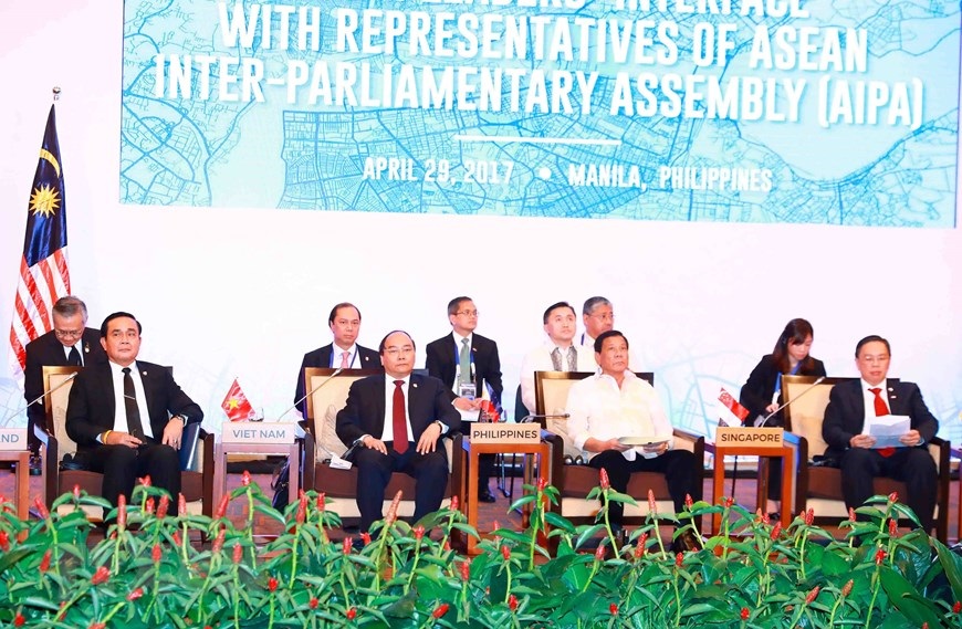 Thủ tướng Nguyễn Xuân Phúc dự cuộc họp giữa các Nhà lãnh đạo ASEAN với đại diện Hội đồng liên Nghị viện ASEAN (AIPA), ngày 29/4/2017, tại Manila (Philippines). (Ảnh: Thống Nhất/TTXVN)