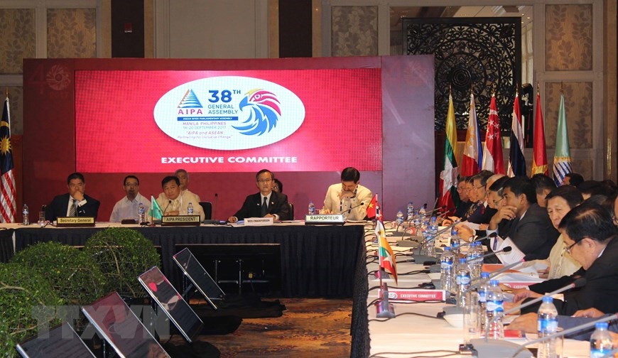 Sáng 15/9/2017, tại Manila (Philippines) diễn ra phiên họp của Ban Chấp hành Đại hội đồng AIPA-38. Đoàn đại biểu cấp cao Quốc hội Việt Nam do Phó Chủ tịch Thường trực Quốc hội Tòng Thị Phóng làm Trưởng đoàn, tham dự AIPA-38. (Ảnh: TTXVN)
