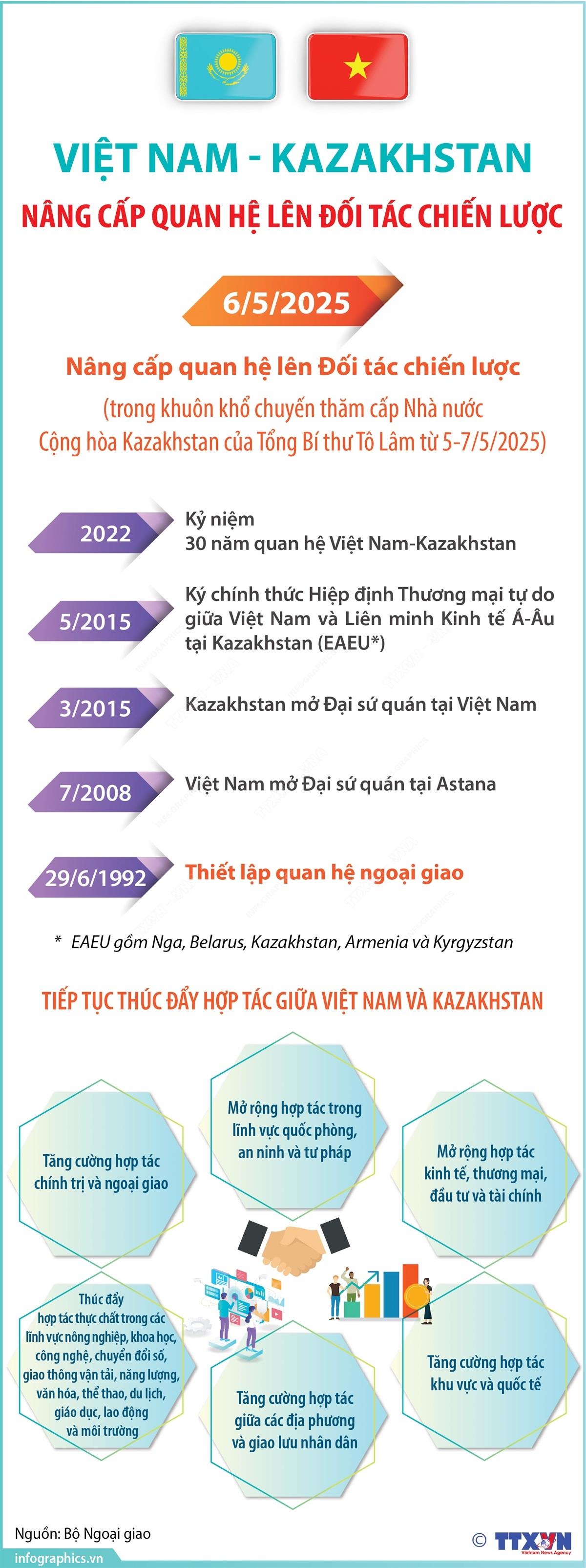 [Infographics] Việt Nam và Kazakhstan nâng cấp quan hệ lên Đối tác chiến lược